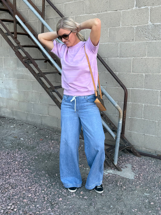 Wide Stripe Cuff Mid Rise Jean